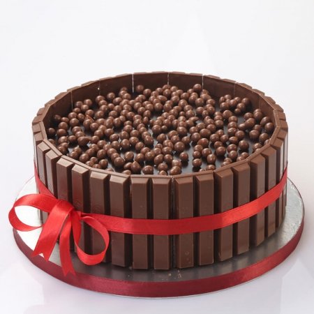 Multiple layers of chocolate sponge cake with vanilla whipped cream and chocolate ganache decorate with chocolate garnish.